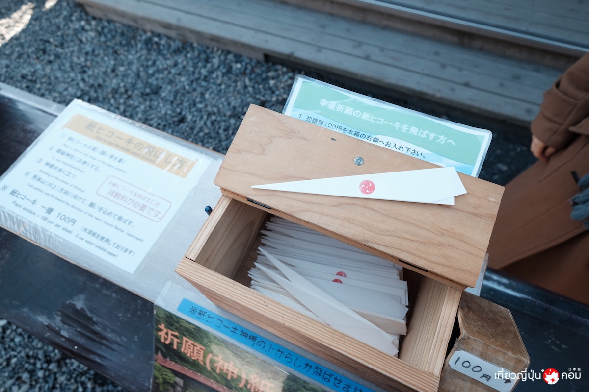กิจกรรมยอดนิยมของนักท่องเที่ยว คือ การซื้อเครื่องบินกระดาษที่ทำจากวัสดุธรรมชาติ ในราคา 100 เยน มาเขียนคำอธิษฐาน แล้วปาลงไปยังแม่น้ำไดยะ โดยเชื่อกันว่ามีความศักดิ์สิทธิ์ ช่วยดลบันดาลให้สิ่งที่ขอนั้น เป็นจริงได้