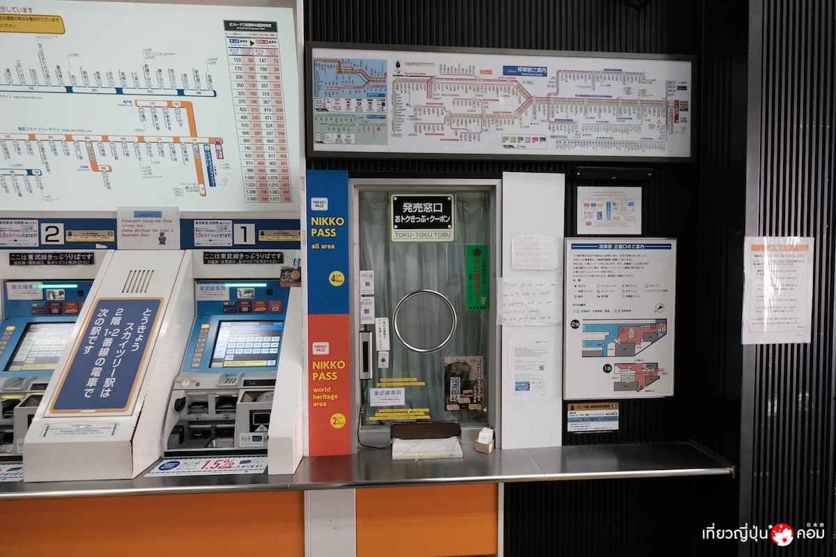 ถ้าหากใครเดินทางก่อนเวลาทำการของ TOBU Tourist Information Center Asakusa สามารถทำการซื้อ NIKKO PASS ได้ที่เคาเตอร์ ด้านข้างตู้จำหน่ายตั๋วอัตโนมัติ (ภายในเวลาทำการ ช่องนี้จะปิดให้บริการ)