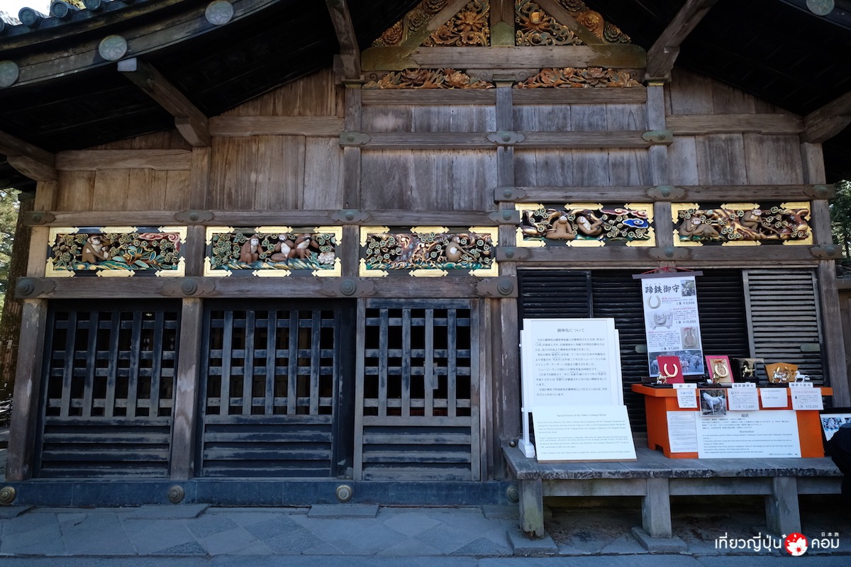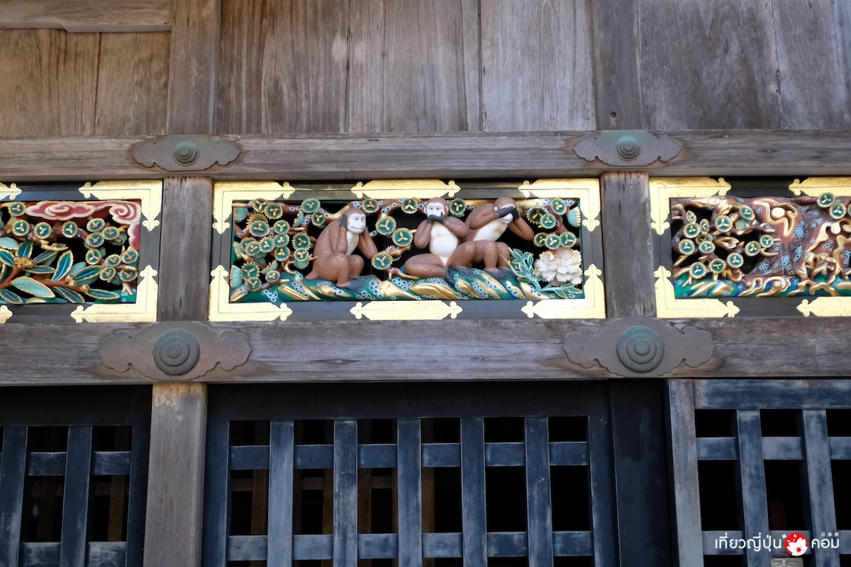 ภายในศาลเจ้า มีสถานที่สำคัญมากมาย ทั้ง ประตูไม้โบราณที่สวยงาม, อาคารวิหารหลัก และรอง ไปจนถึง สุสานของ โทะคุงะวะ อิเอะยะสุ ที่ต้องเดินขึ้นเขาไปอีกประมาณ 300 เมตร นอกจากนี้ ยังมีงานแกะสลักชิ้นสำคัญที่ควรค่าแก่การไปชมให้ได้ อย่าง “ลิงสามตัว” (Three wise monkeys) แต่ละตัวทำท่าทางต่างกัน คือปิดหู ปิดตา และปิดปาก สื่อถึงการไม่รับรู้ ฟัง และกล่าววาจา ในสิ่งที่ไม่ดี และ “แมวหลับ” (Sleeping Cat) สัญลักษณ์แห่งความสงบสุข ในช่วงที่ตระกูลโทะคุงะวะปกครองญี่ปุ่น
