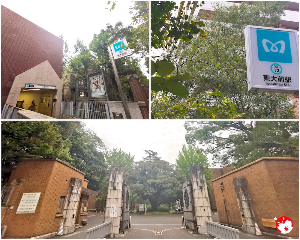 การเดินทาง: ขึ้นรถไฟโตเกียวเมโทร สาย Nanboku ลงสถานี Todaimae ออกทางออกที่ไปม.โตเกียว หลังจากนั้นให้เลี้ยวซ้าย และเดินเข้าประตู Nou-Seimon ก็จะได้พบกับรูปปั้นตรงฝั่งซ้าย