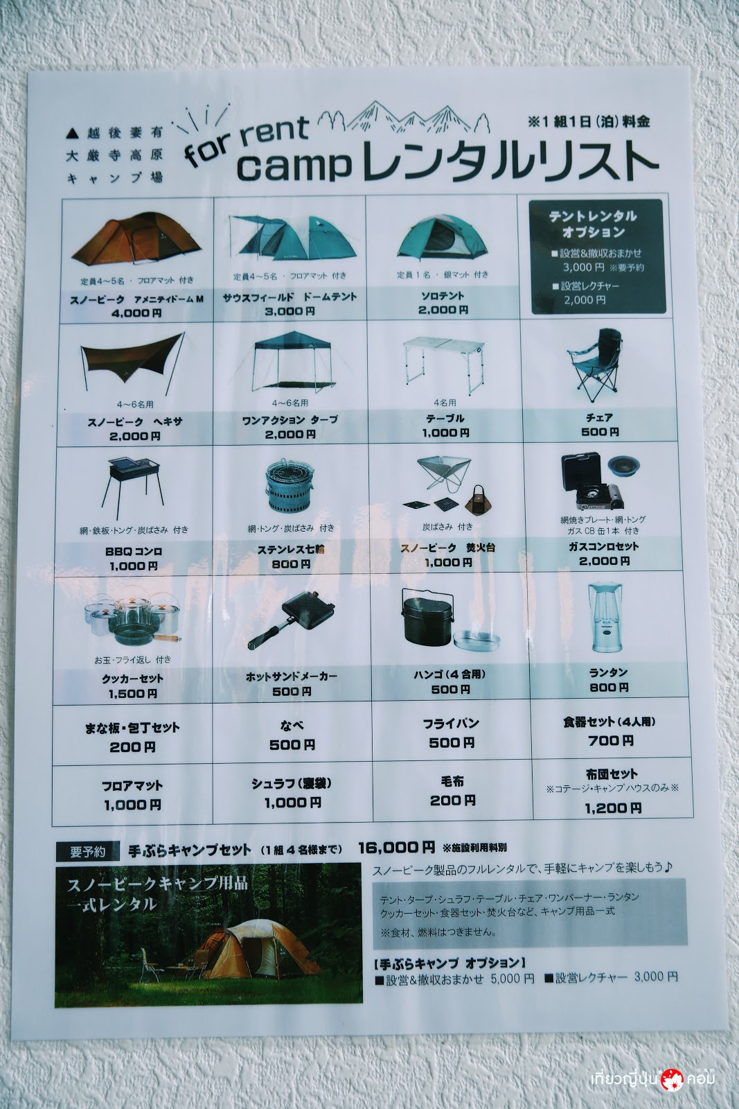 **เนื่องจากสถานที่ตั้งแคมป์อยู่ค่อนข้างไกล แนะนำให้เช่ารถขับมาจากสถานี Echigo-Yuzawa จะสะดวกที่สุด