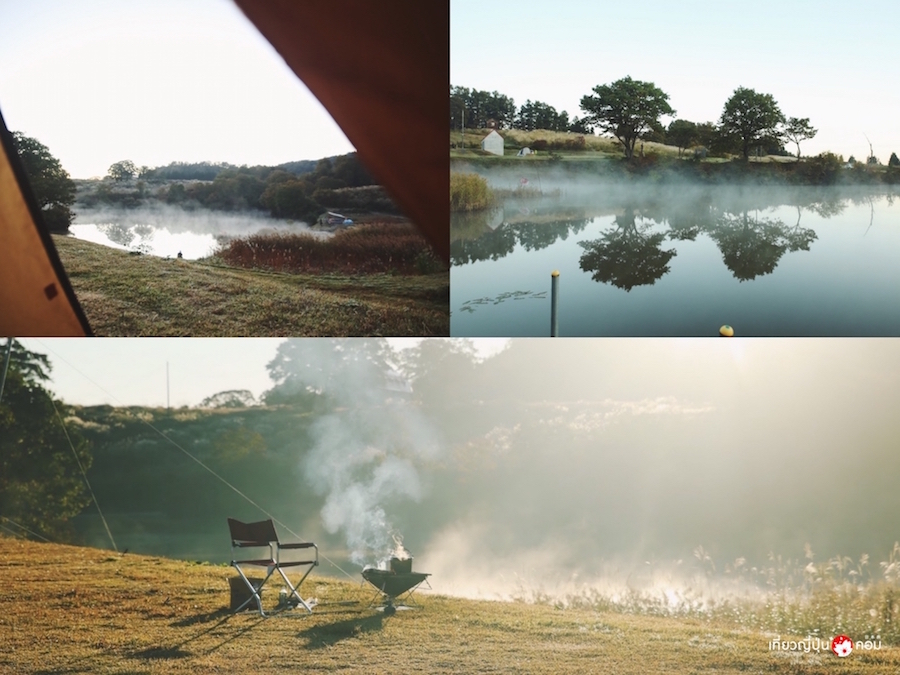 ตื่นเช้ามาเวลาประมาณตีห้าครึ่ง พอเปิดเต้นท์ ออกมา พบว่ามีหมอกลงเต็มบ่อน้ำ เป็นบรรยากาศยามเช้าที่สวยมาก