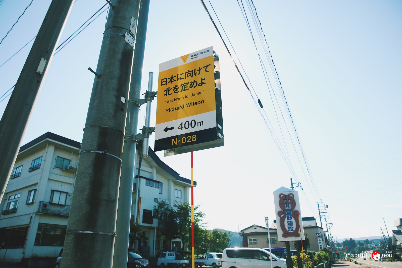 ปั่นมาเรื่อยๆ ก็จะเจอกับงานอาร์ต ตั้งอยู่ท่ามกลางธรรมชาติ อย่างผลงานนี้ชื่อว่า “Set North For Japan”