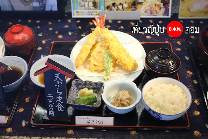 และแล้วก็เผยโฉมเมนูที่สั่งไป นั่นก็คือ Tempura Teishoku นั่นเอง ขอเฟิร์มว่าของจำลองที่หน้าร้านไม่ได้หลอกตา เพราะของจริงกุ้งตัวใหญ่อย่างที่เห็น (สำหรับคนไทย ที่อาจจะติดรสเค็มหรือรสจัด อาจจะไม่ค่อยคุ้นปากสักเท่าไร เพราะร้านนี้เค้าไม่ทำเค็ม รสชาดจะออกบางๆ แต่น้ำซอสเท็มปุระที่ให้มา ทีเด็ดอยู่ตรงที่ตรงนี้ ต้องลอง) แป้งที่ใช้ทอดจนเป็นสีทองดูน่าทานก็กรอบนอกนุ่ม (เนื้อกุ้ง) ในสุดๆ