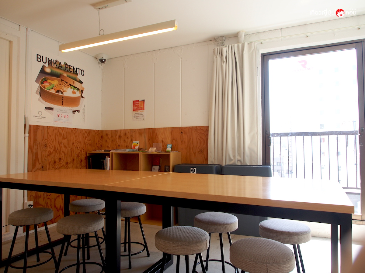 ในช่วงเย็นถึงค่ำของวันบริเวณล้อบบี้ของโฮสเทลก็จะถูกเปลี่ยนเป็น IZAKAYA BUNKA บาร์แบบญี่ปุ่นในสไตล์อิซะกะยะซึ่งตั้งอยู่ที่ชั้นล่างสุดของโฮสเทล พร้อมเสริฟเครื่องดื่มแอลกอฮอล์ ไม่ว่าจะเป็นเบียร์สดหรือ Tokyo’s sake & side dish ในราคา 600 เยน สาเกญี่ปุ่นเสริฟพร้อมเครื่องเคียงประจำวัน