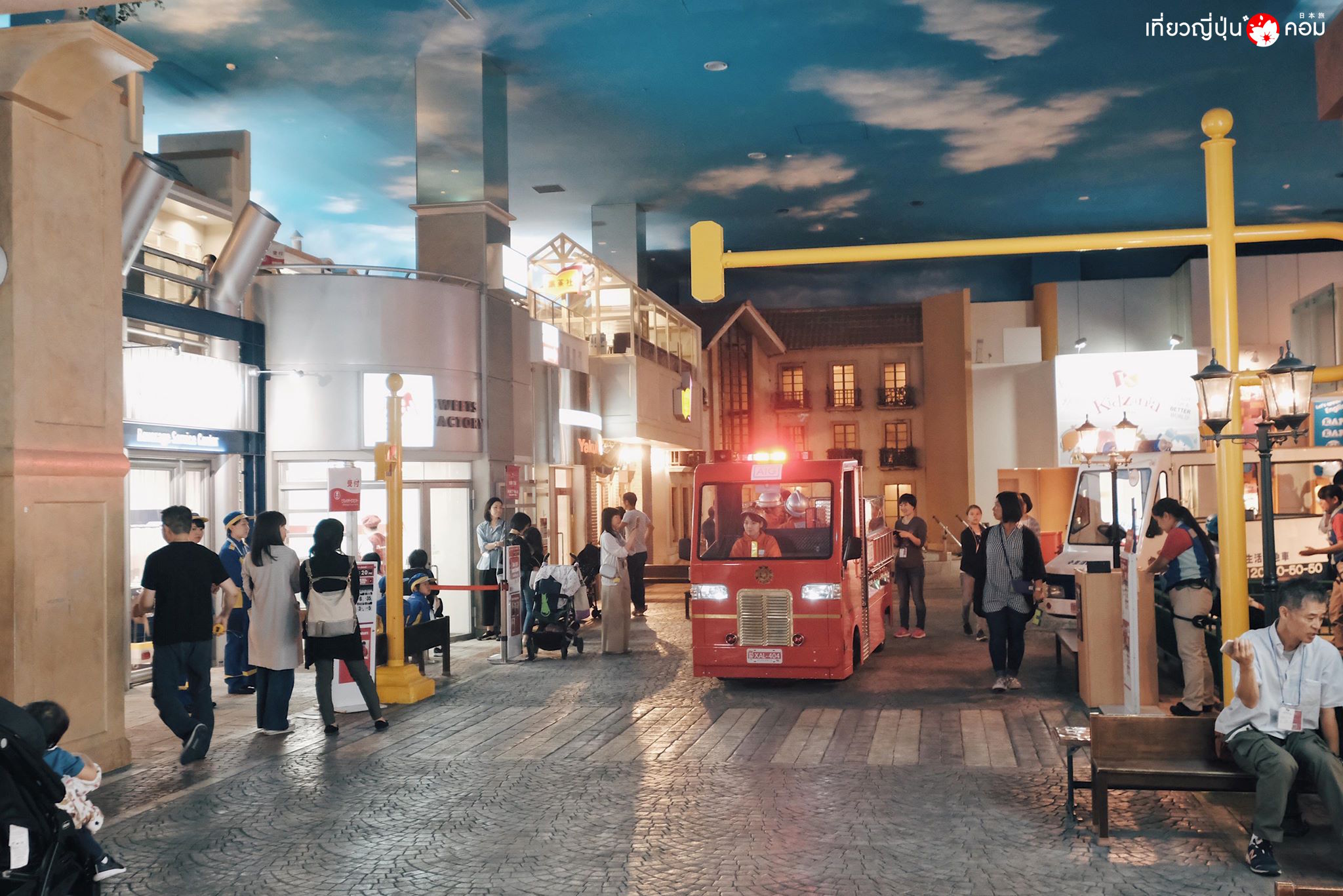โดยภายในเมืองจำลองแห่งนี้ จะประกอบไปด้วย ร้านค้า, ธนาคาร, โรงละคร, โรงพยาบาล, ปั๊มน้ำมัน, โรงงานหลายประเภท, บริษัทรถไฟใต้ดิน, เครื่องบิน, บริษัท แมวดำ (ขนส่งสินค้า), ห้างสรรพสินค้า และ อีกมากมาย ที่เรานึกถึงเวลาไปเที่ยวญี่ปุ่น ซึ่งทำออกมาได้สวยงาม และเหมือนจริงมากๆ อีกด้วย