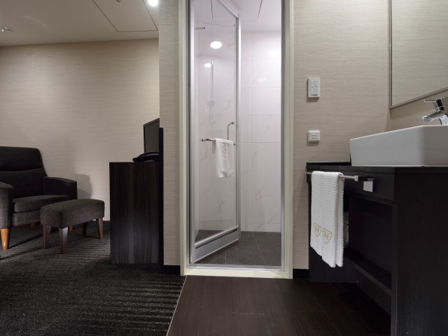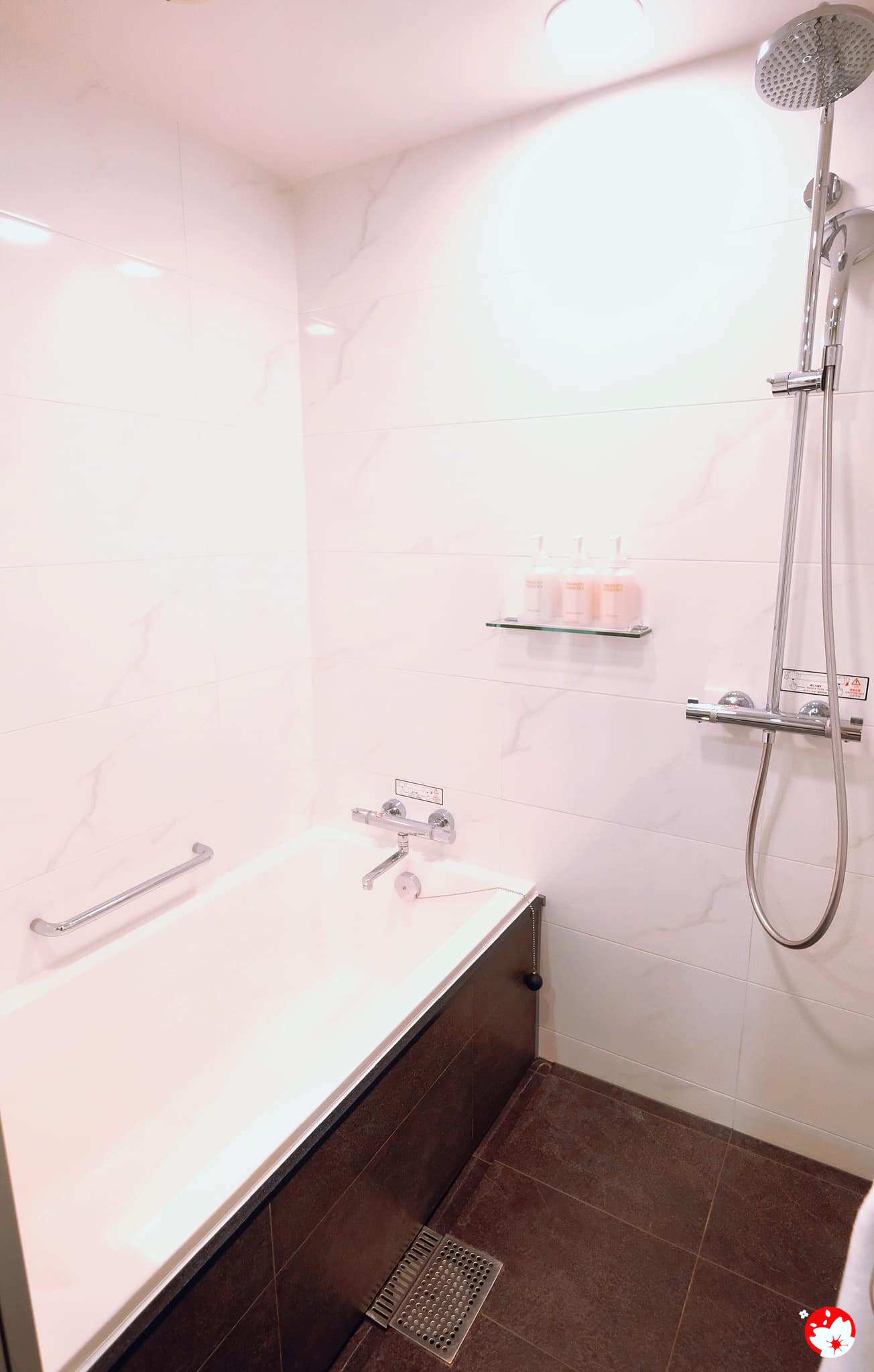 ห้องอาบน้ำ โดยปกติโรงแรมส่วนใหญ่ในญี่ปุ่นก็มักจะมีอ่างอาบน้ำไว้ให้บริการอยู่แล้ว แต่ของที่นี่ เพิ่มส่วนของพื้นที่สำหรับยืนอาบน้ำไว้ให้ด้วยครับ
