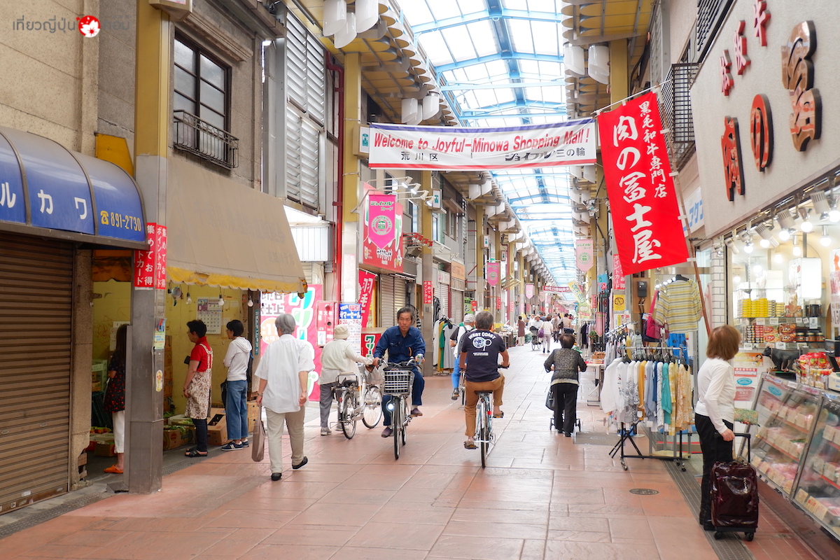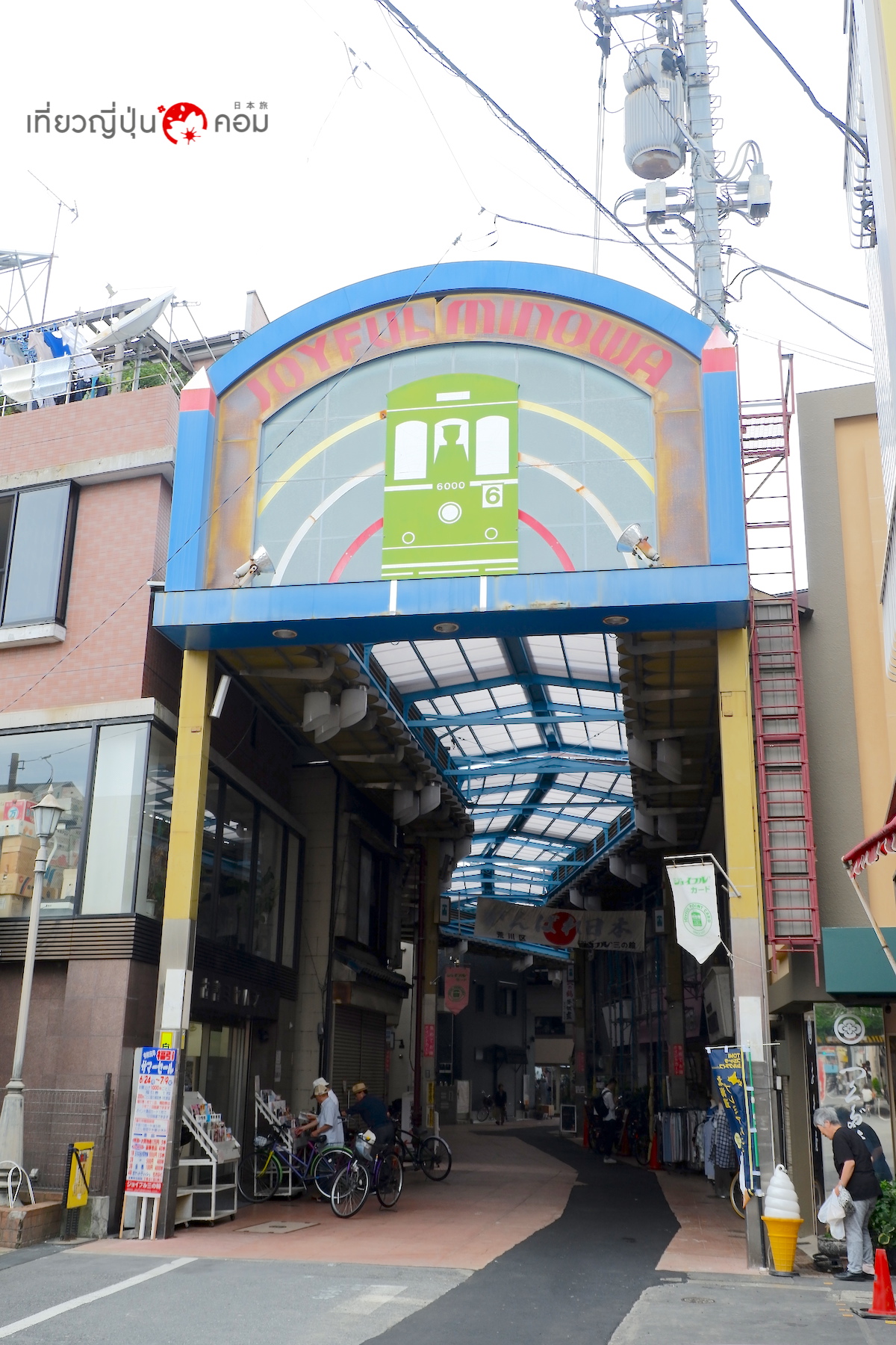 ซื้อตั๋วแล้วอย่าเพิ่งรีบไปขึ้นรถรางล่ะ ไปเดินเล่นที่ Joyful Minowa Shotengai ย่านการค้าสุดเก่าแก่ มีความวินเทจสุดๆ ลูกค้าส่วนใหญ่มักจะเป็นชาวบ้านในแถบนี้ โดยเฉพาะผู้สูงวัย