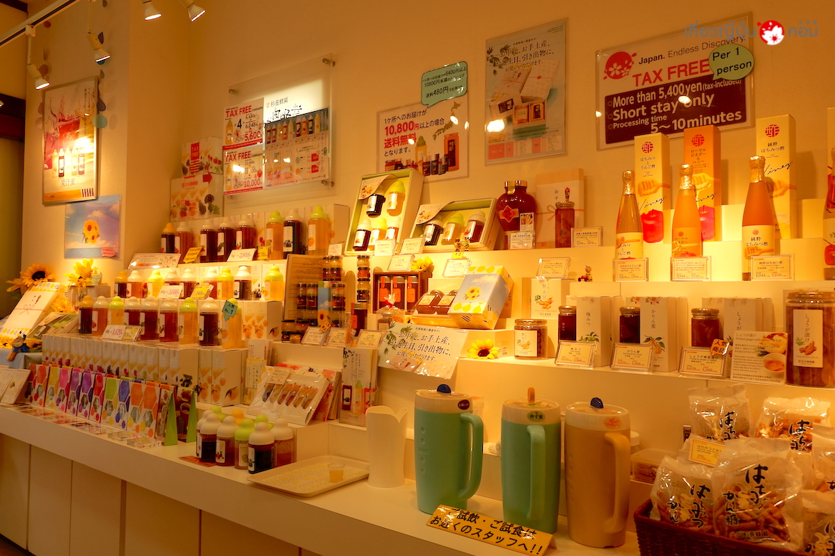 เดินมาเหนื่อยๆรู้สึกหิวน้ำ เลยแวะชิมเครื่องดื่มเลมอนน้ำผึ้งเย็นกันที่ร้าน Sugi Bee Garden Cafe ที่นี่คือคาเฟ่น้ำผึ้งชื่อดังจากจังหวัดคุมะโมโตะ จำหน่ายสินค้าจากน้ำผึ้งคุณภาพดี ไม่ว่าจะเป็นน้ำผึ้งแท้และแบบผสมรสชาติต่างๆเพื่อนำไปละลายน้ำดื่มเองที่บ้าน หรือจะเป็นเครื่องสำอางค์ที่ทำมาจากผึ้ง รวมถึงซอฟท์ครีมทานคู่กับรวงผึ้ง