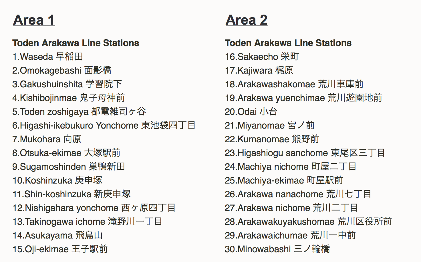 โดยการท่องเที่ยวด้วยรถไฟสาย Tokyo Sakura Tram (Toden Arakawa Line) ที่เราจะใช้ในวันนี้ ใช้เวลาเกือบจะทั้งวัน หรือสำหรับใครที่มีเวลาน้อย อาจจะปรับเปลี่ยนสถานที่และเวลาได้ตามใจชอบเลย เลือกดูสถานที่เที่ยวของแต่ละสถานีได้จาก tab ด้าล่างนี้ครับ