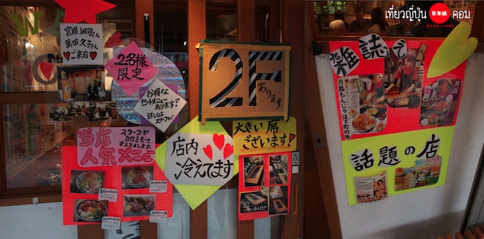 ร้านอาหารเยอะแยะละลานตามาก มีประมาณ 70 ร้าน เกือบทุกร้านที่ตั้งอยู่สองข้างทางของถนนคนเดิน Nishinaka Street หรือ Monja Street แห่งนี้ จะขายอาหารกะทะร้อน นั่นก็คือ Monjayaki เป็นหลัก และอาจจะมีบางร้านที่ขาย Okonomiyaki ด้วย มีร้านส่วนน้อยที่มีคนต่อคิว เพราะออกรายการทีวีญี่ปุ่น เลยมีคนตามรอยมากินกัน ไม่ได้หมายความว่าร้านอื่นจะไม่อร่อยนะครับ ลองเดินดูให้ทั่วก่อนก็ได้ รับรองตาลายแน่นอน