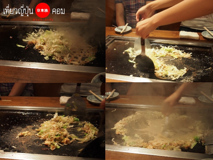 ส่วนการทำ Monjayaki พนักงานที่น่ารักจะเข้ามาจัดการผัดให้เราเสร็จสรรพครับ เพราะว่าทำเองคงจะไม่อร่อย เนื่องจากต้องมีการแบ่งสัดส่วนของเครื่องปรุงต่างๆให้พอดีกันด้วย