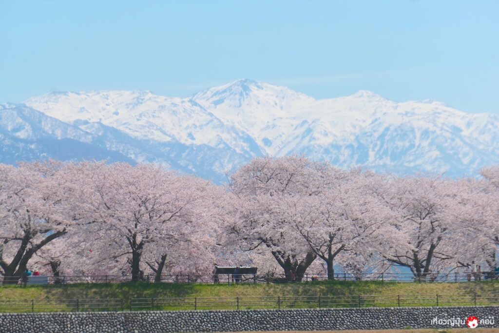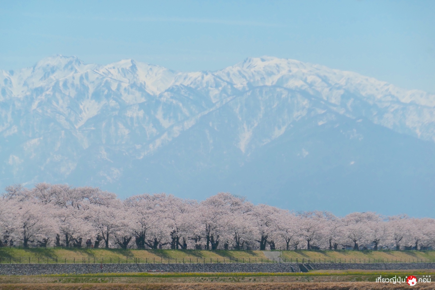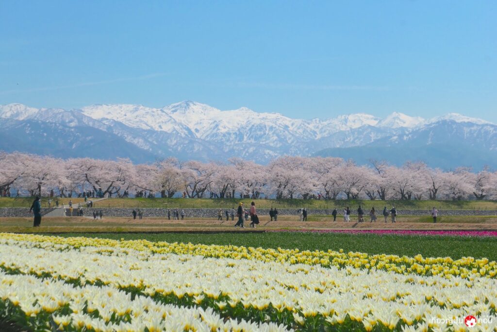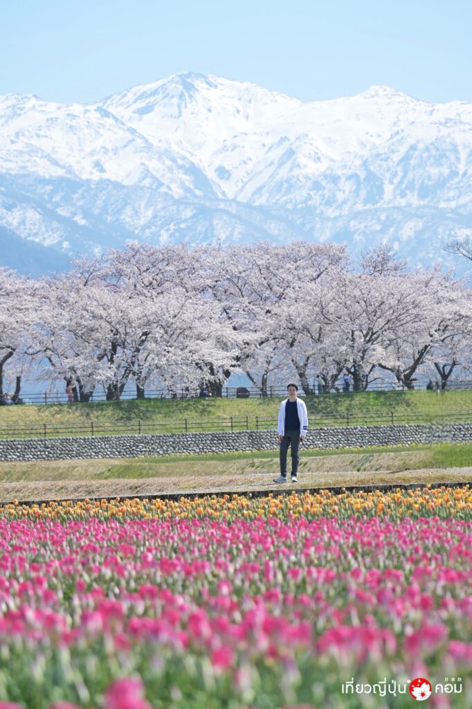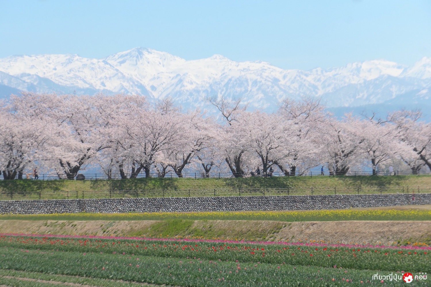 งานเทศกาลฤดูใบไม้ผลิ Asahi Funagawa “Spring Quartet” ที่เมืองอาซาฮี จังหวัดโทยามะ พบกับต้นซากุระโซเมโยชิโนะกว่า 280 ต้นที่ปลูกโดยคนในท้องถิ่นเรียงรายเป็นอุโมงค์ซากุระตลอดแนวทั้งสองฝั่งของแม่น้ำฟุนากาวะเป็นระยะทาง 1.2 กม. พร้อมกับทุ่งดอกทิวลิปหลากสีและนาโนะฮานะ มีฉากหลังเป็นเทือกเขาเจแปนแอลป์ที่ยิ่งใหญ่