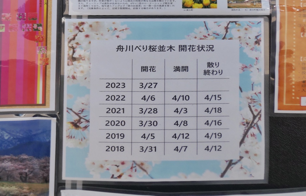 สถิติของซากุระปีก่อนๆ (เรียงจาก เริ่มผลิดอก / ฟูลบลูม / ร่วงหมด) ในปี 2023 ซากุระฟูลบลูมประมาณวันที่ 2 เมษา ร่วงหมดประมาณวันที่ 10 เมษา สำหรับรีวิวนี้ไปมาวันที่ 4 เมษา ซากุระฟูลบลูม แต่ทิวลิปยังบานไม่ทันกัน