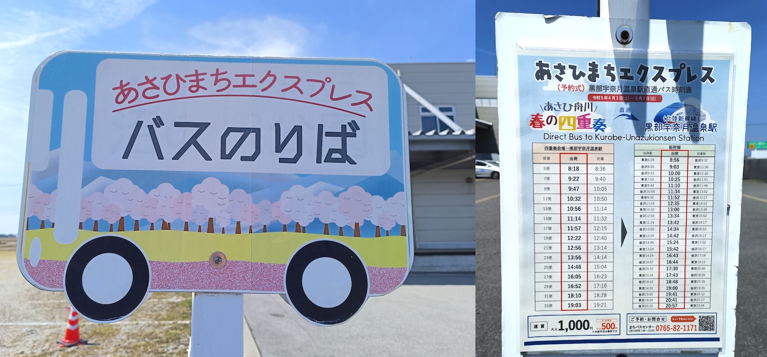 การเดินทางไปงาน: จากสถานีชินคันเซ็น Kurobe Unazuki Onsen ขึ้นรถ Asahimachi Express ใช้เวลา 15 นาที (ค่ารถ 1,000 เยน รอบเวลารถบัสจะสัมพันธ์กับรอบชินคันเซ็นพอดี แต่ต้องจองล่วงหน้าผ่านทางเว็บไซต์ หรือ อีเมล)