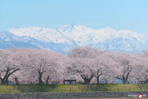 งานเทศกาลฤดูใบไม้ผลิ Asahi Funagawa “Spring Quartet” ที่เมืองอาซาฮี จังหวัดโทยามะ พบกับต้นซากุระโซเมโยชิโนะกว่า 280 ต้นที่ปลูกโดยคนในท้องถิ่นเรียงรายเป็นอุโมงค์ซากุระตลอดแนวทั้งสองฝั่งของแม่น้ำฟุนากาวะเป็นระยะทาง 1.2 กม. พร้อมกับทุ่งดอกทิวลิปหลากสีและนาโนะฮานะ มีฉากหลังเป็นเทือกเขาเจแปนแอลป์ที่ยิ่งใหญ่