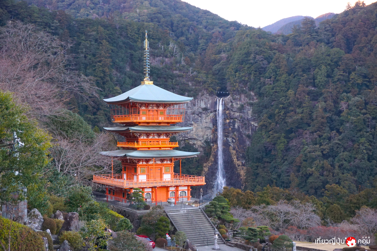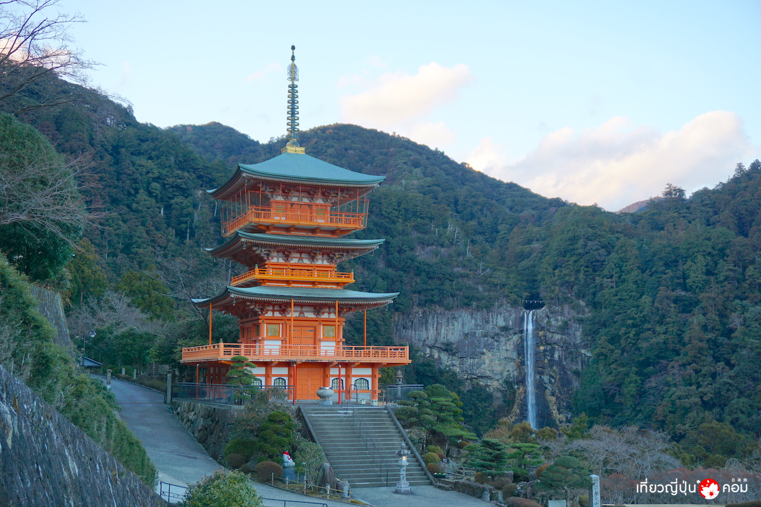 ซึ่งสถานที่แรกที่เราจะมาในวันนี้ เป็นจุดที่มีชื่อเสียงที่สุดสำหรับนักท่องเที่ยว นั่นก็คือ ศาลเจ้าคุมะโนะนาจิไทชะ (Kumano Nachi Taisha) ศาลเจ้านิกายชินโตที่ตั้งอยู่บนภูเขานาจิ สูง 350 เมตรเหนือน้ำทะเล โดยมีต้นกำเนิดตามความเชื่อโบราณโดยการสร้างศาลเจ้าแห่งนี้ขึ้นเพื่อบูชาน้ำตกนาจิ