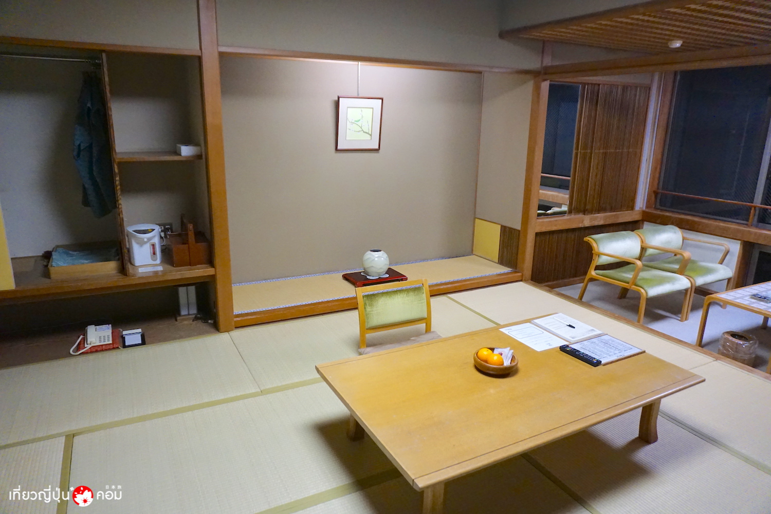 หลังจากที่พิชิตเป้าหมายแรกกันไปแล้ว ก็ได้เวลาเดินทางเข้าสู่ที่พักในคืนนี้ ถ้าได้มาเที่ยวแถบนี้แล้ว แนะนำให้พักในเมืองน้ำพุร้อนชื่อดัง คะวะยูอนเซ็น (Kawayu Onsen) ซึ่งที่พักที่เราเลือกพักในครั้งนี้ชื่อว่า Kawayu Midoriya